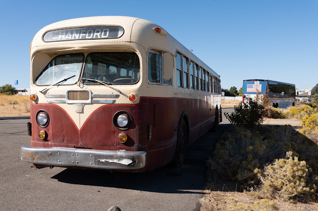 This past fall we did a Columbia River Cruise. Asa we cruised from the Clarkston Washington to the Pacific we had several ports to visit. At each port there was typically a bus there to take us to various sites. Here is a picture of our bus.... our bus is in the background of the second pic.